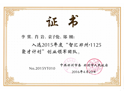 榮獲“智匯鄭州1125聚才計劃”創(chuàng)業(yè)領(lǐng)軍團(tuán)隊,獲得扶持
